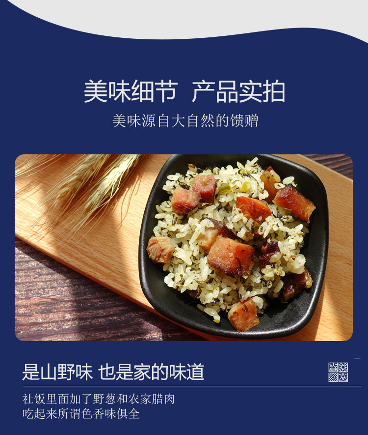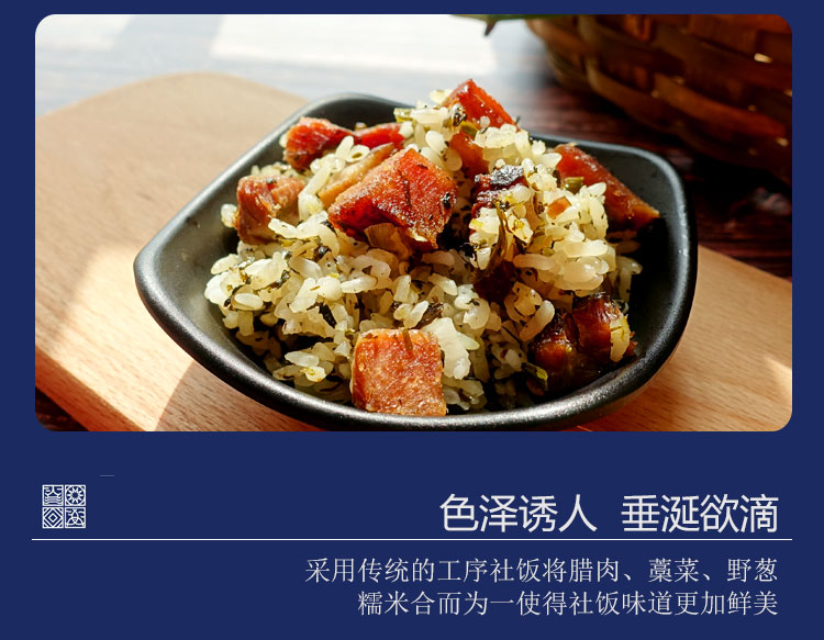 商品名称:土特产社饭野菜蒿菜饭侗家手工制作社饭农家腊肉糯米饭 半斤装